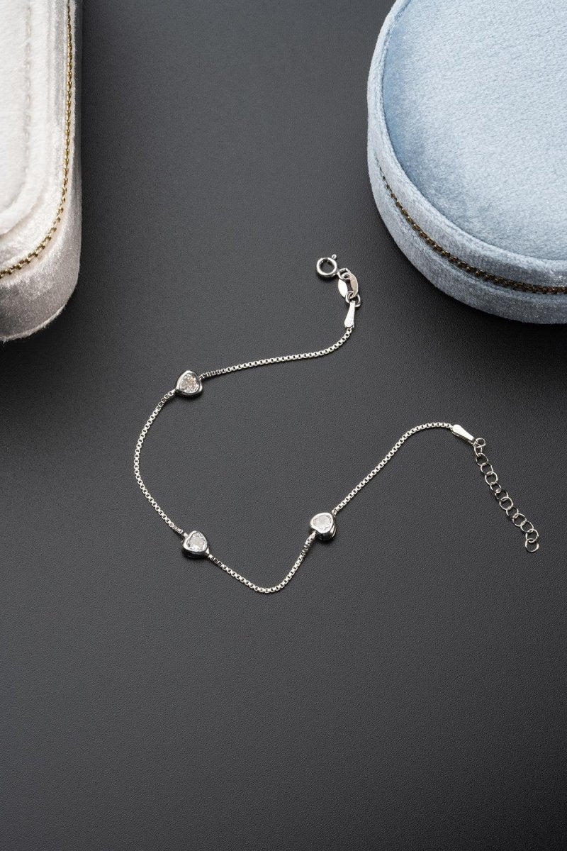 Forbedr din stil med Silver Rhodium Plated Zircon Stone Minimal 3 Star Model Bracelet. Dette elegante armbånd er lavet af 925 Sterling Sølv og har funkende zircon sten, alt sammen forbedret med en rhodium belægning for en poleret finish.