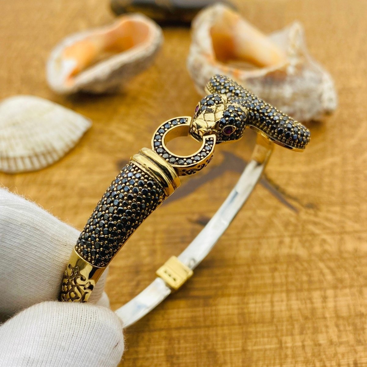 Håndlavet tyrkisk smykkerDette justerbare 925 sterling sølv slangearmbånd har en dristig sort onyx sten, hvilket gør det til et unikt og stilfuldt tilbehør. Ideelt som en gave til mor eller enhver kvinde, der elsker særprægede smykker.