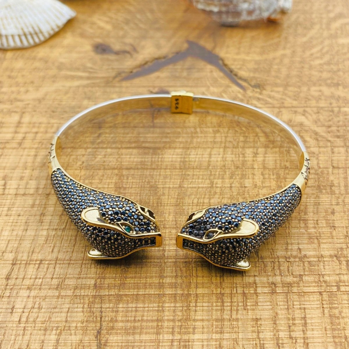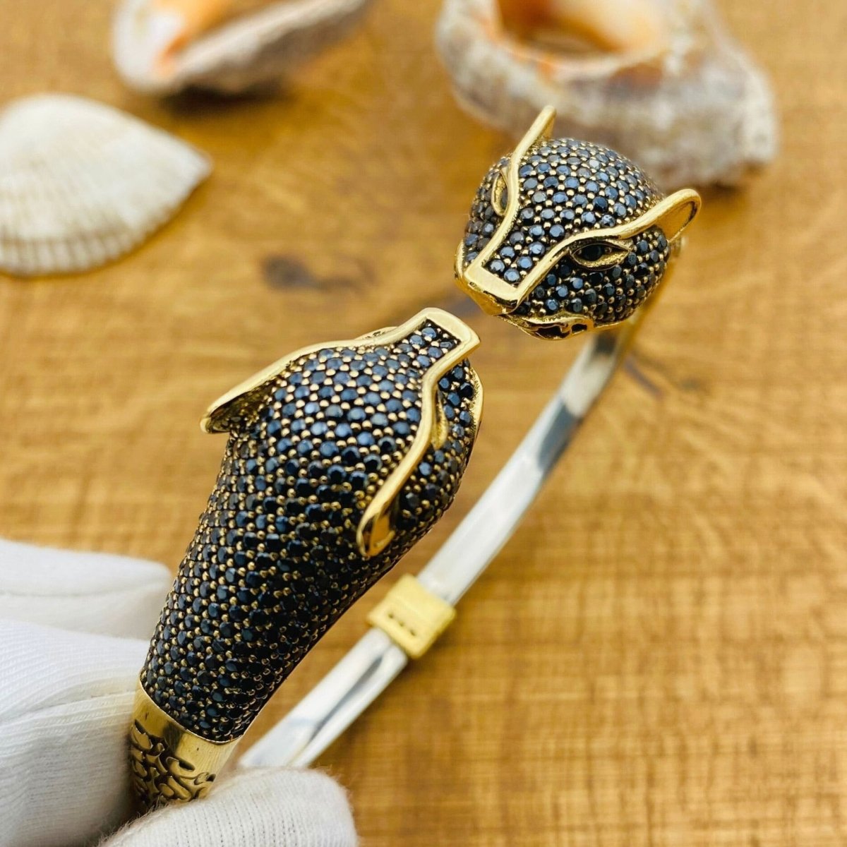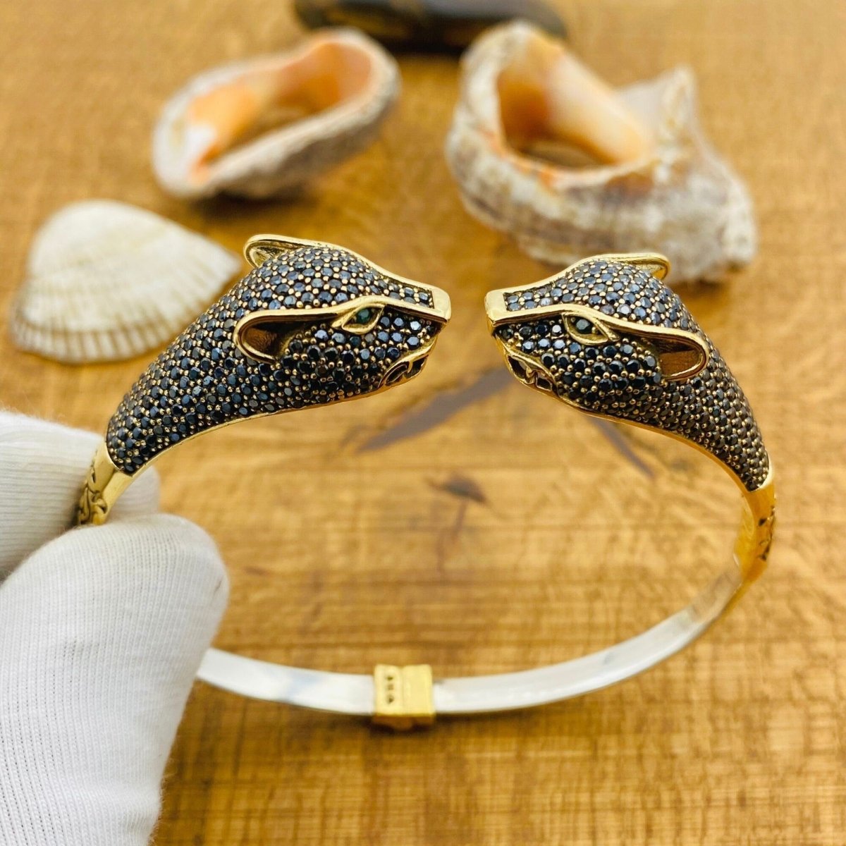 Håndlavet 925 Sterling Sølv SmykkerDette slående sort onyx tigerarmbånd har et dristigt dyrefigurdesign. Lavet med 925 sterling sølv, er det perfekt som en gave til hende.