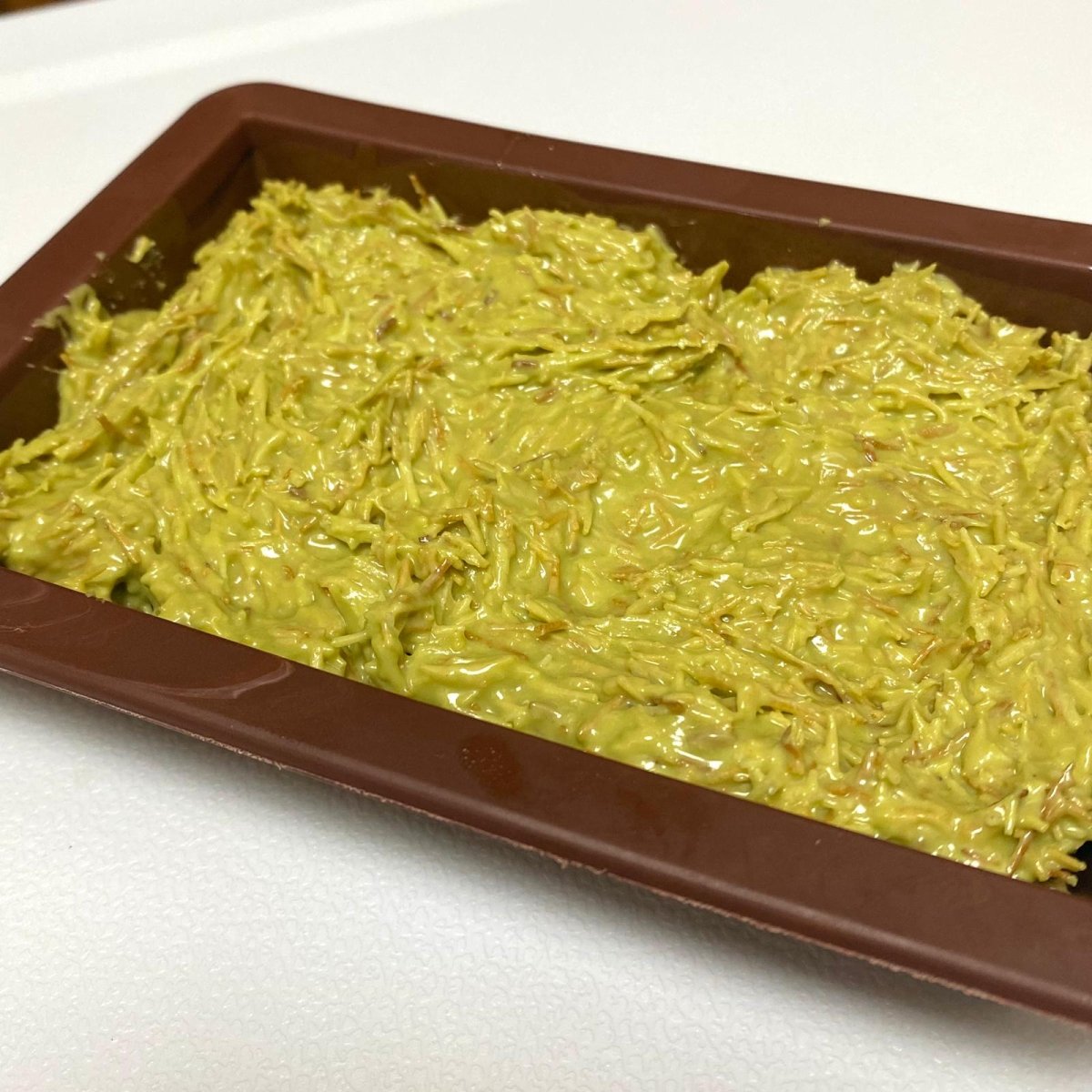 Genanvendelig form: Den medfølgende Dubai chokolade silikoneform gør det muligt at lave flere portioner og er nem at rengøre.
