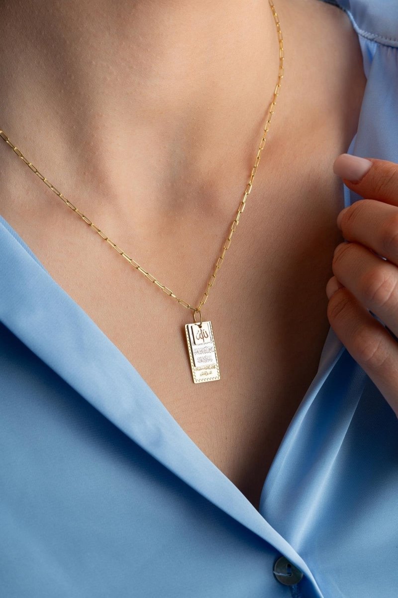 Oplev den åndelige elegance af Silver Paperclip Chain Model Islamic Necklace. Dette udsøgte stykke er lavet af 925 Sterling Sølv og har et unikt papirclips kæde design. Pyntet med islamiske motiver, herunder Ayatal Kursi, Nazar bøn, og ordet "Allah", tilbyder det en blanding af tro og stil.