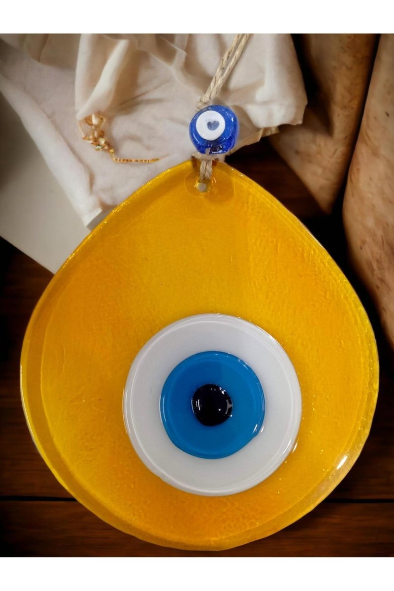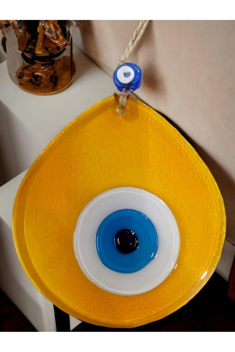 Blå Nazar Perle Gennemsigtig Honningfarvet Dråbe Mønster Håndlavet Vægornament