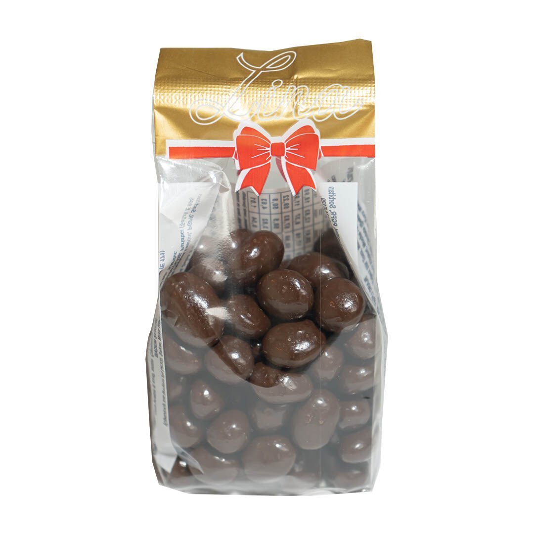 Ingredienser: Mælkchokolade (50%), sukker, kakaosmør, hel mælkepulver, kakaomasse, emulgator (AMP, PGPR, SORBITAN TRI STEARAT), aroma (vanillin), sukkerbelægning, ristede mandler (17%), farvestof (E102, E110, E124, E129, E132, E150d, E171), glansmiddel (gummi arabicum, carnaubavoks), kakaotørstof i mælkchokolade er mindst 30%.