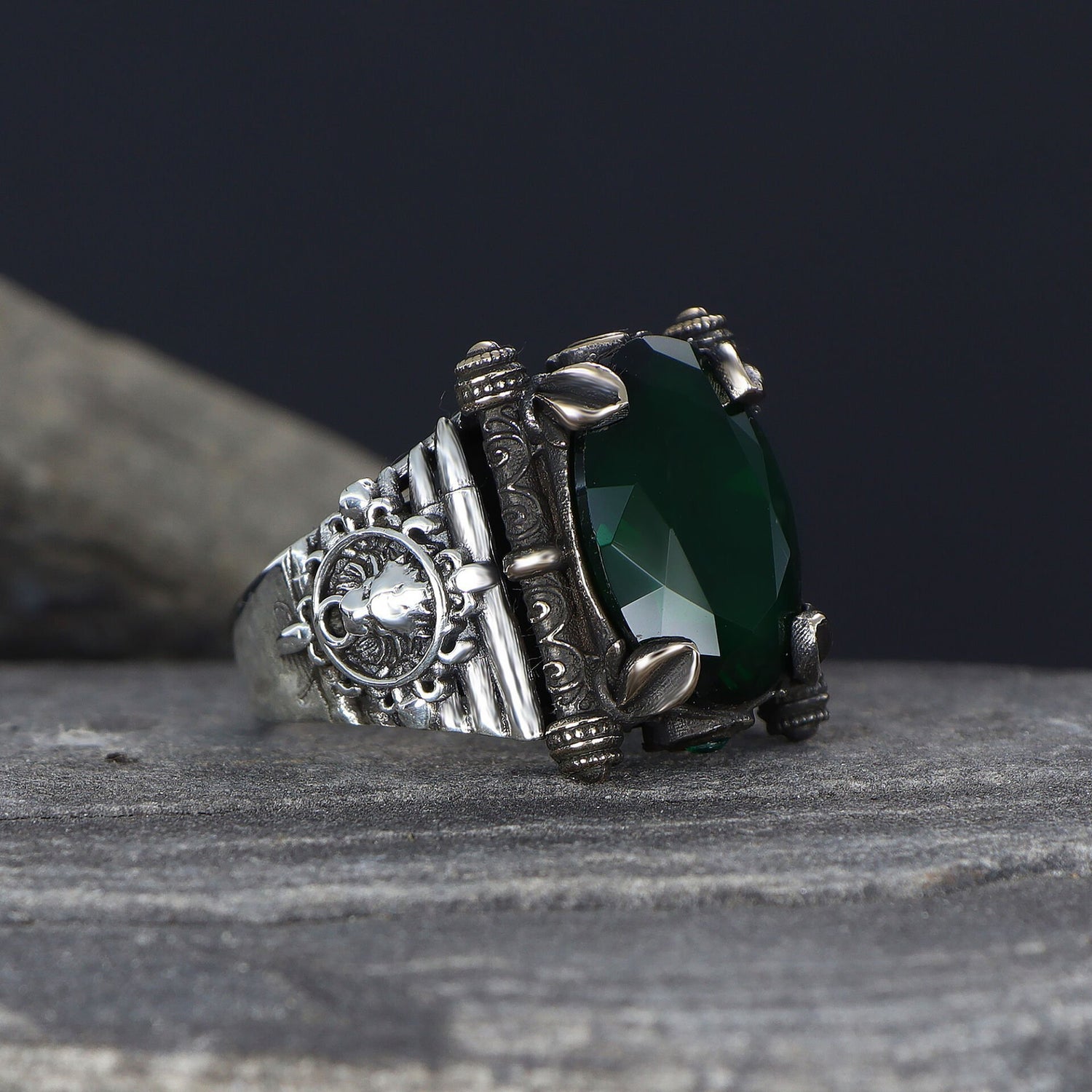 Tesbihevim | Mænds sølvring med grøn zirkonsten