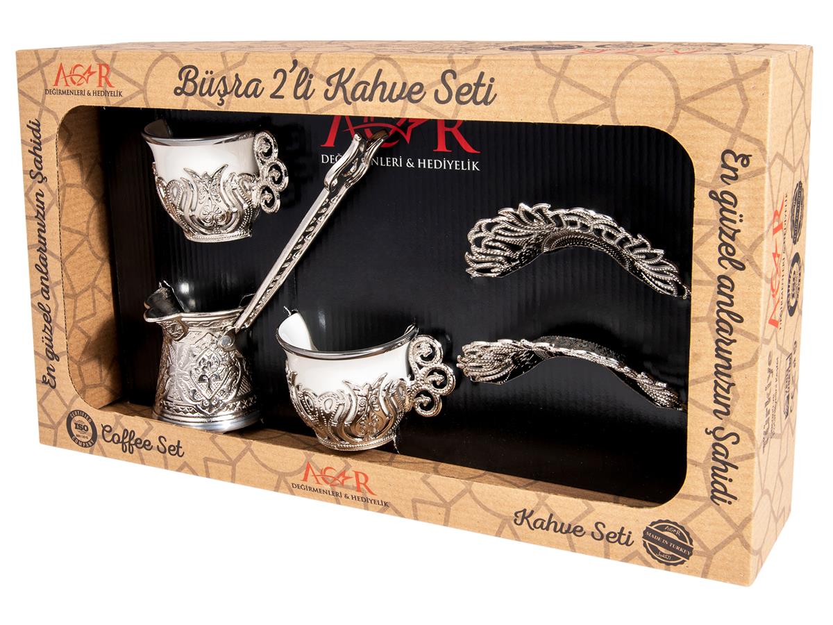 Acar | Turkish Coffee Set of Two + Coffee Pot - Gilded - White