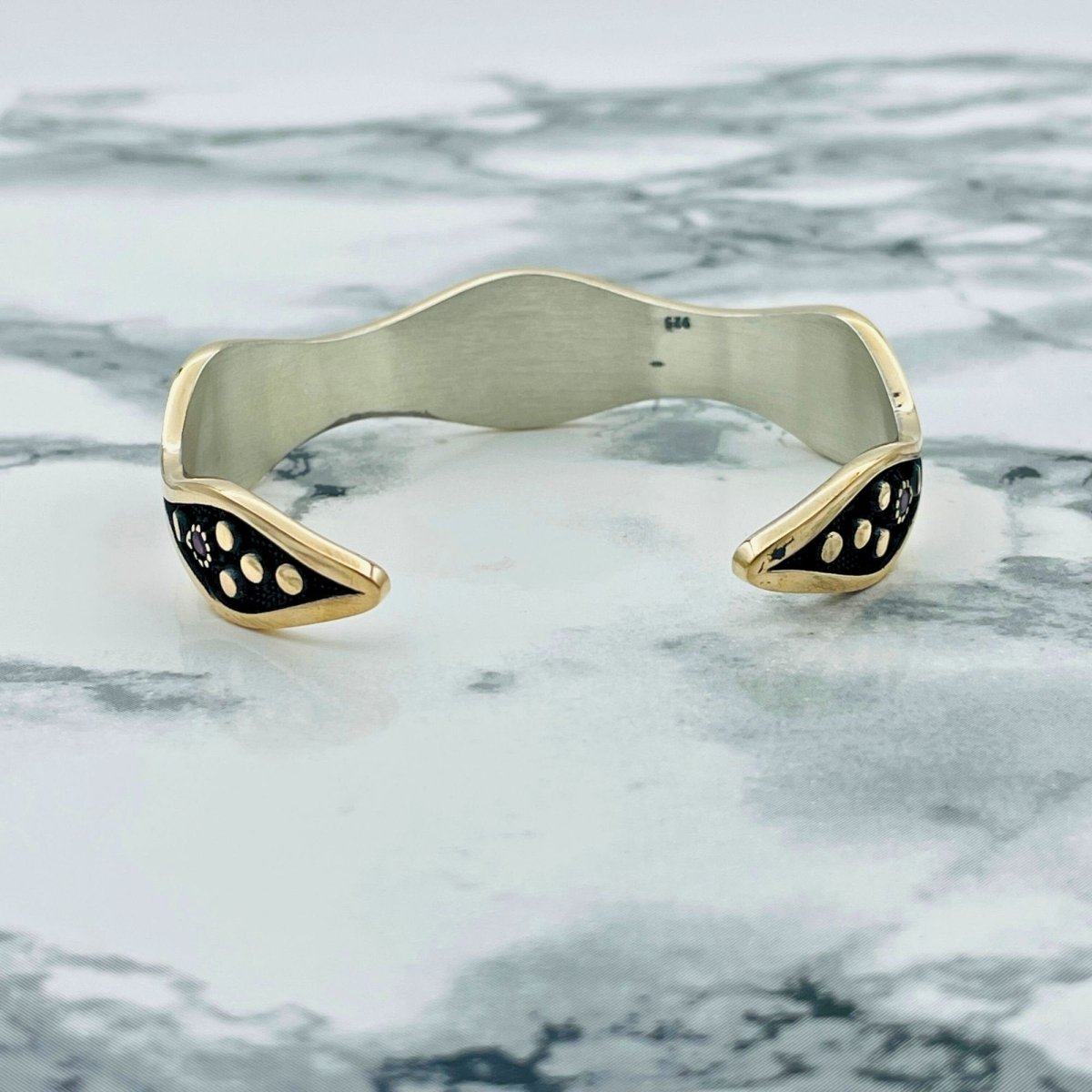 Introducing our exquisite Red Ruby and Emerald Bracelet, a true symbol of Ottoman elegance. Adorned with a central red ruby stone and delicate ruby and emerald accents, this stunning piece exudes sophistication. The wavy edges and intricate design, inspired by Hürrem Sultan's style, offer an authentic antique look.